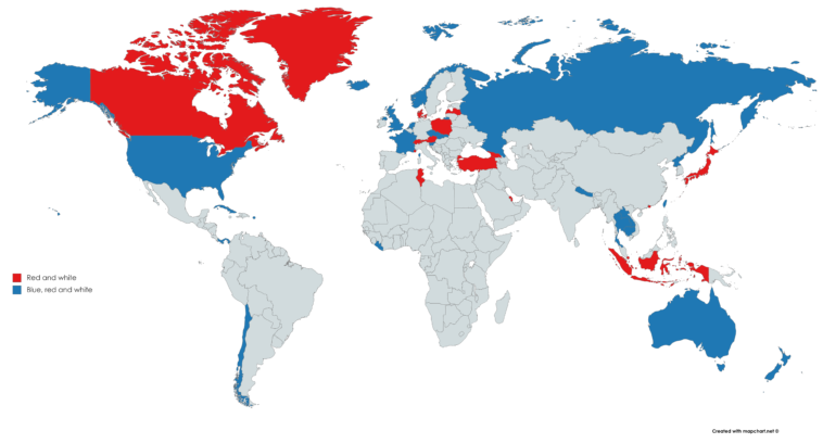 Map Info & Chart : 2 of the most popular flag colour mixes. (the colours on coat of arms are included)