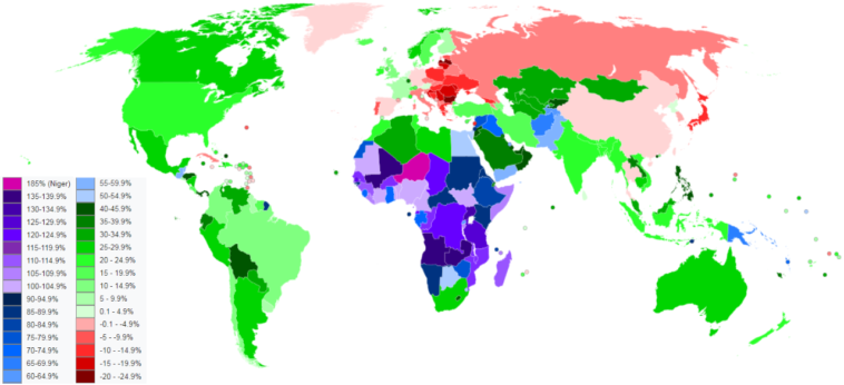 Map : 2017-2050 Population Growth Rate% (medium-fertility) (OC)