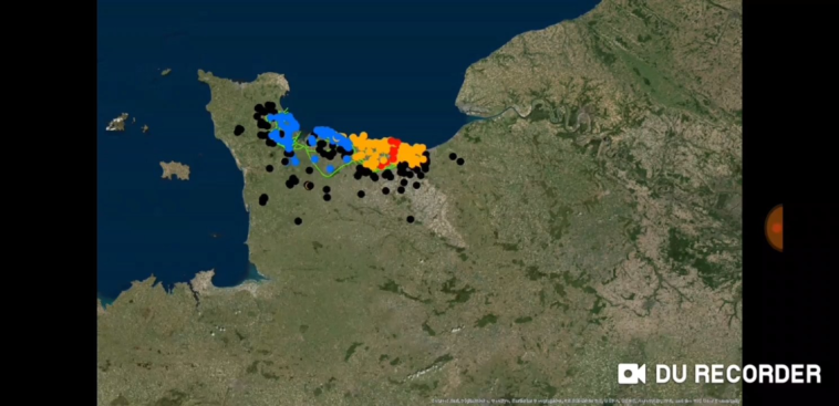 87 days of combat in Normandy: British units in orange, Canadian in red, American units in blue and Axis in black.