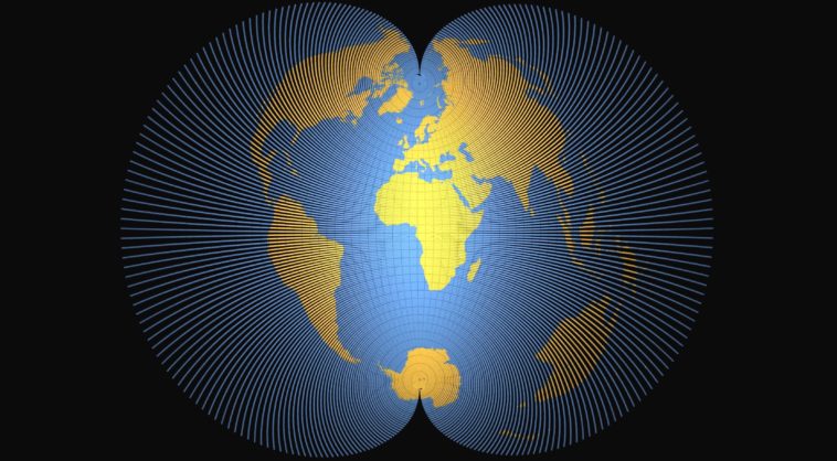 A 1 degree graticule mesh unfolded into a 2D plane (no stretching). A good indicator of the Tissot indicatrix for map projections.