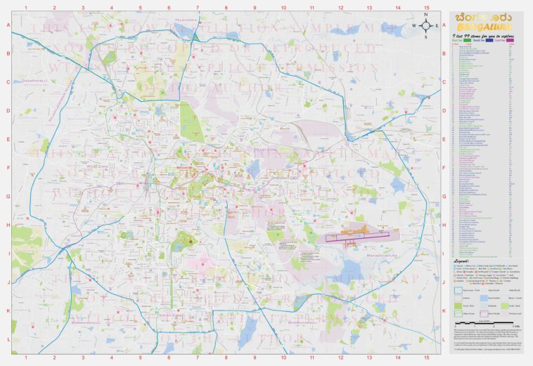 Map Info & Chart : A map of Bangalore (Bengaluru) and all of its important tourist and local attractions [7,451 x 5,120] by Colonel Sanjay Mohan (Retired).