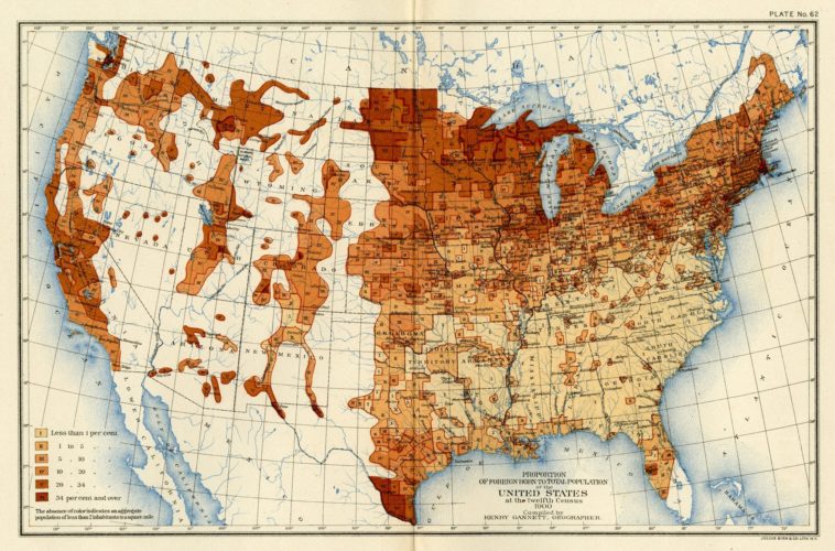 A map of the foreign-born population in the United States (as a percentage of the total population) in 1900 [2,028 x 1,337].