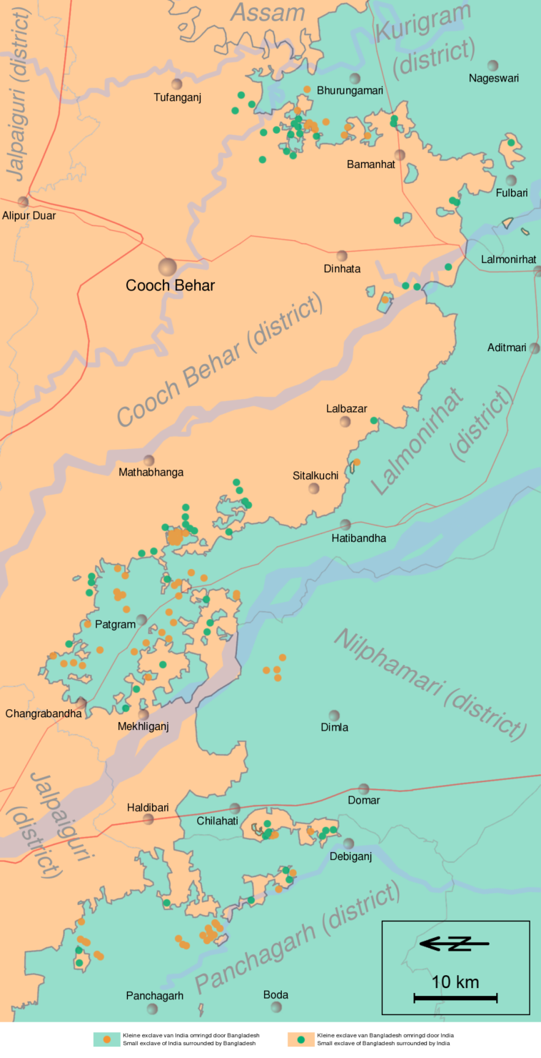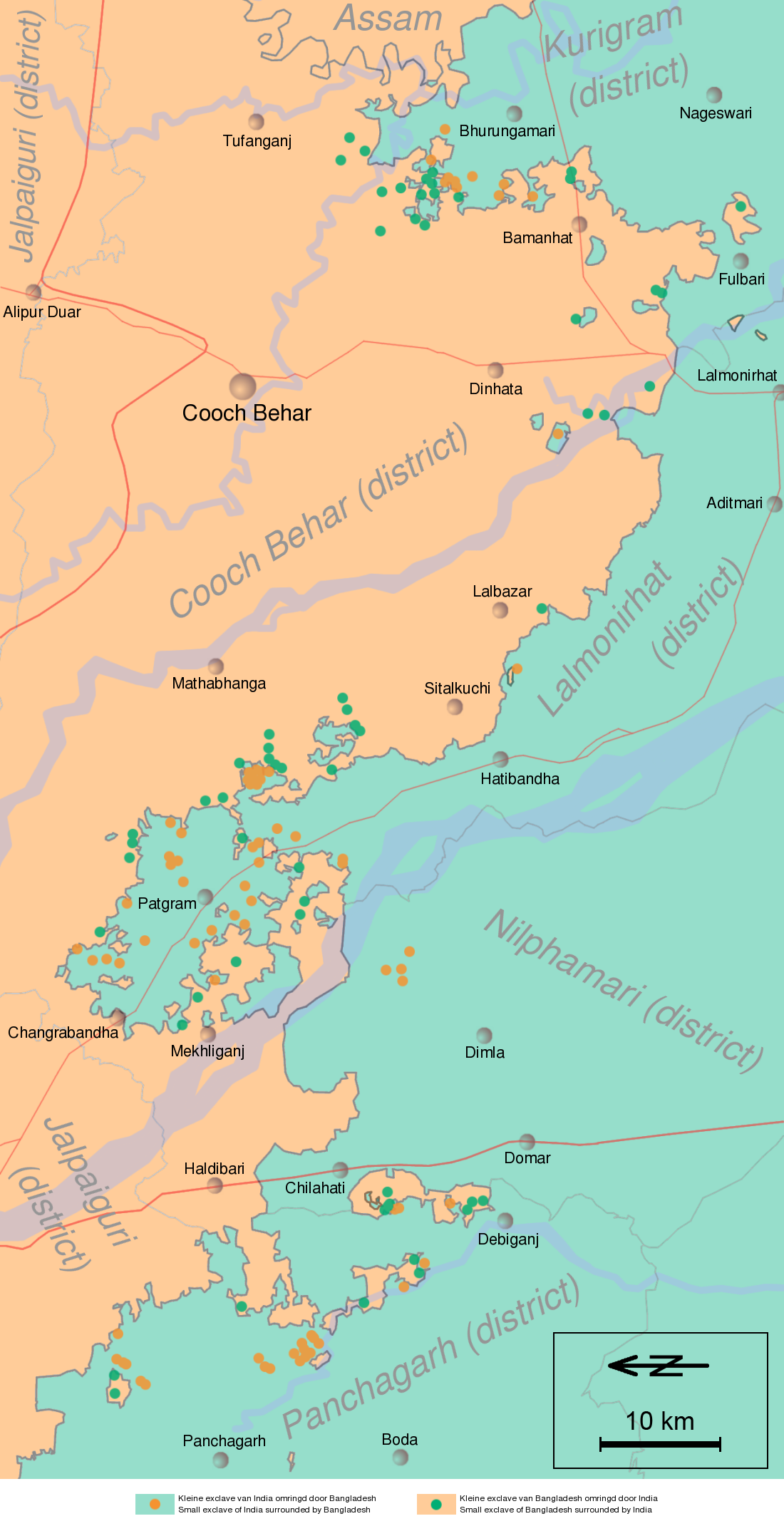 A map of the Indo-Bangladeshi border enclaves before 2015 [1,100 x 2,148].
