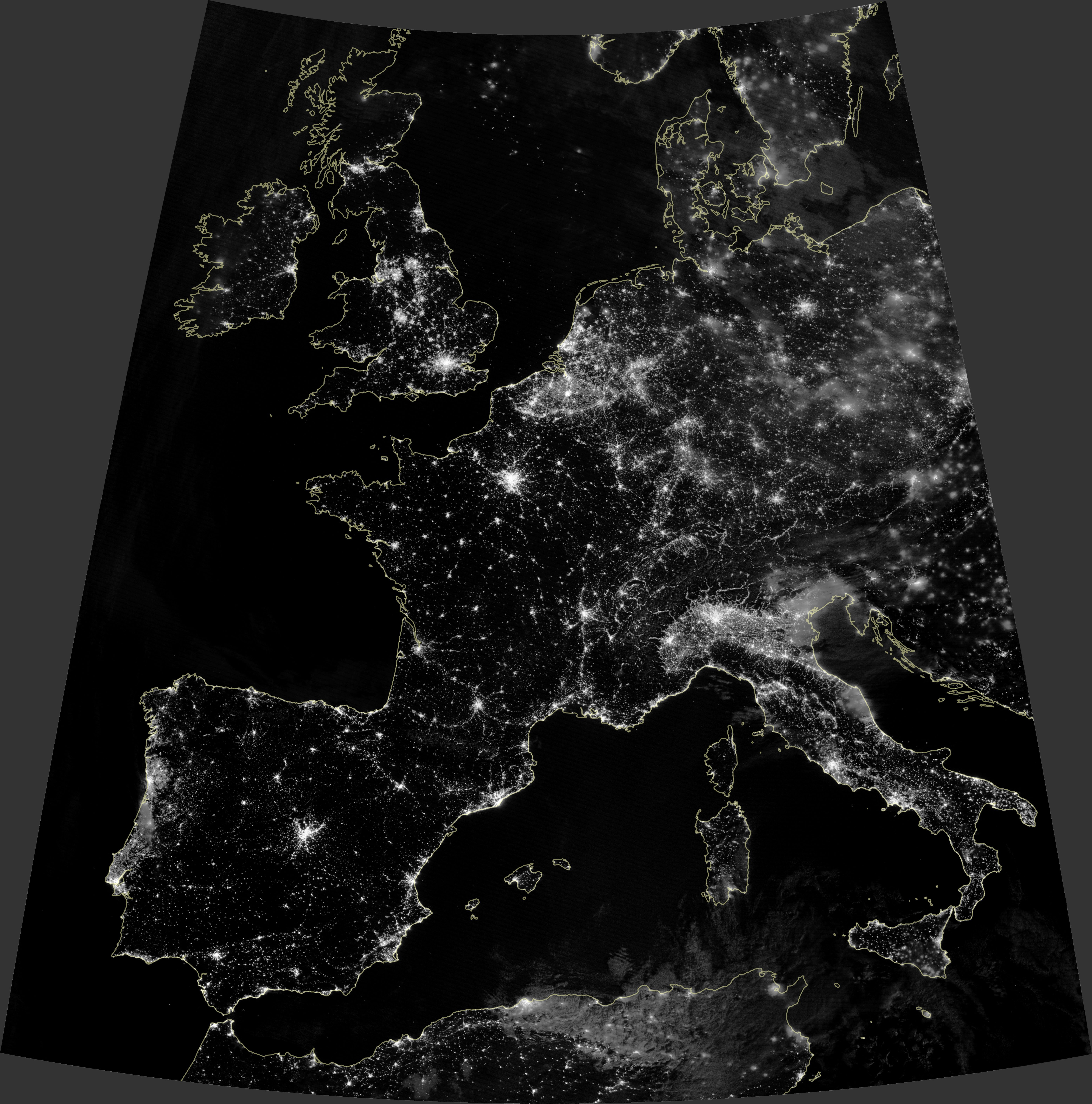 Map : A Nearly Cloud-free View of Europe at Night on Feb 27 — daytime view in comments [5624×5688][OC]