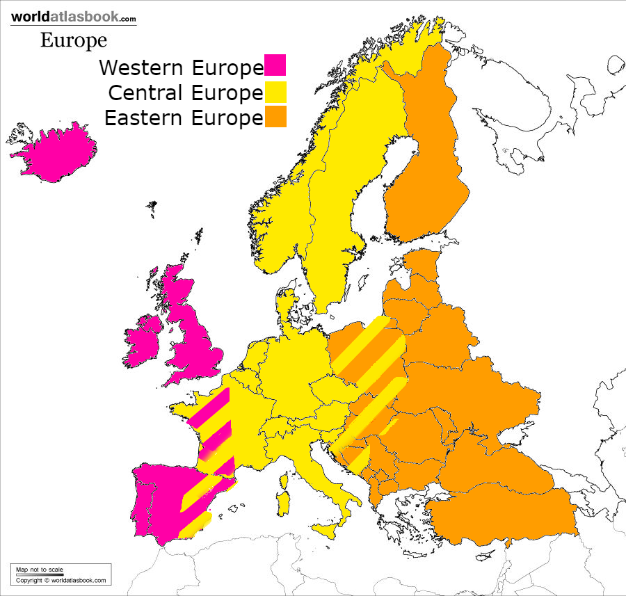 Map Info & Chart : A shitty edit of what I consider western, eastern and central Europe