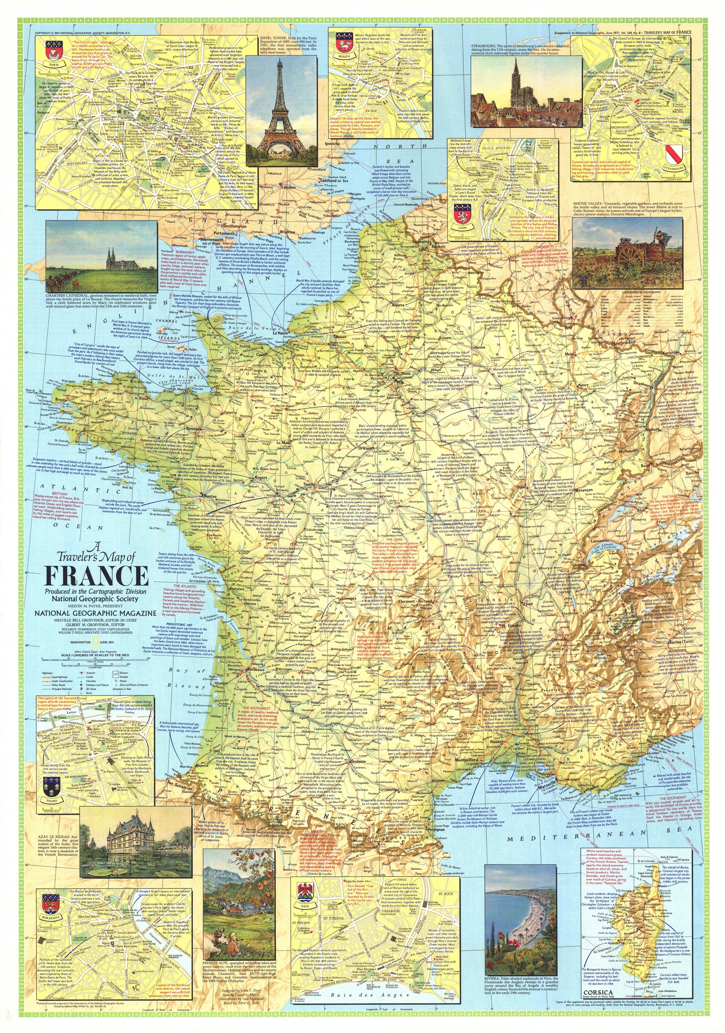 A Traveler’s Map of France, National Geographic Society, 1971. [2400×3422]