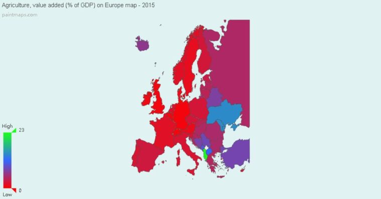 Map Info & Chart : Agriculture, value added (% of GDP) (Europe)