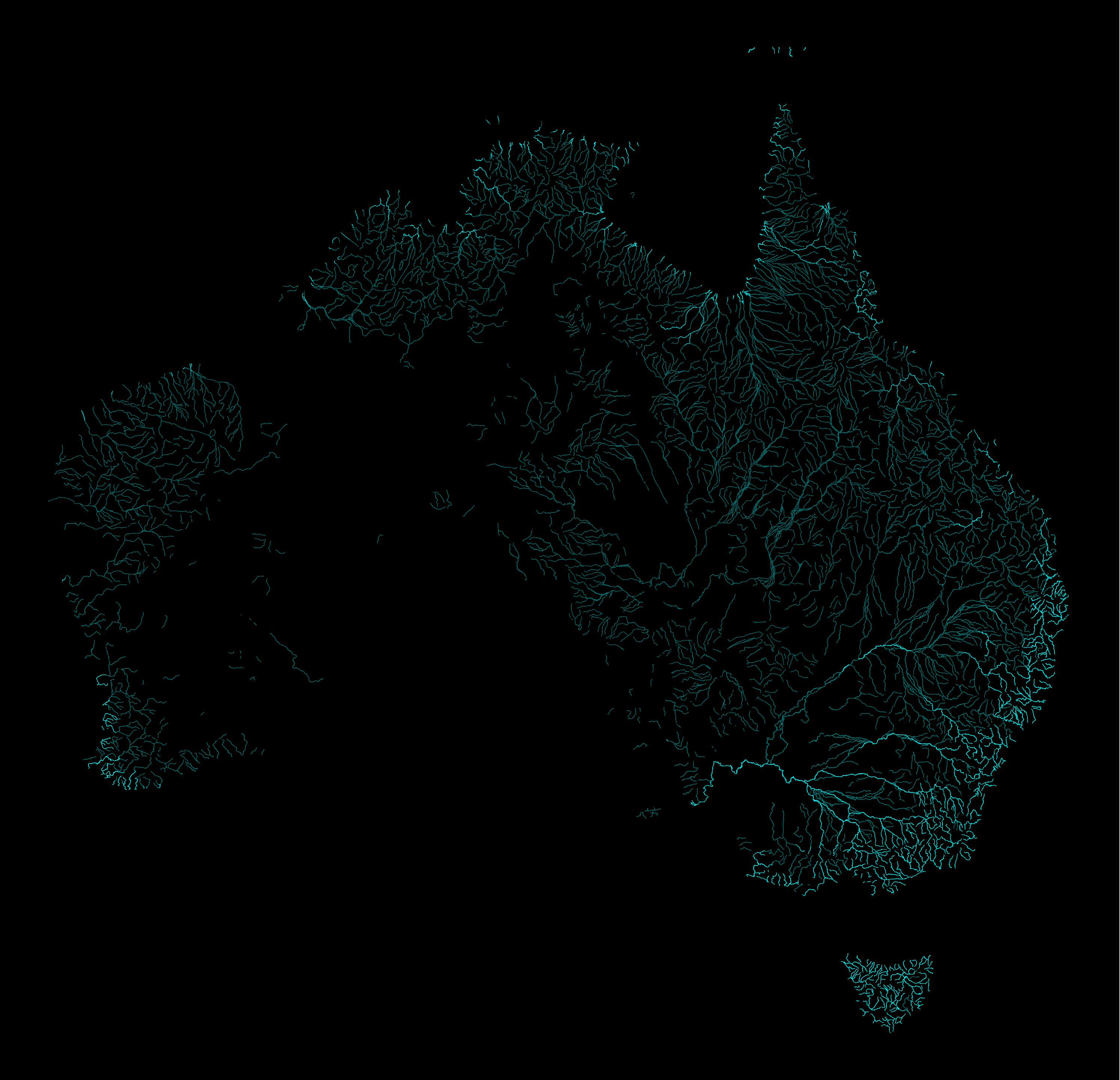 Map : All major rivers of Australia. The brighter ones are perennial and others are seasonal (source: Geoscience Australia) [OC]