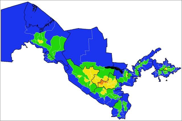 Map Info & Chart : All the landlocked areas within the double landlocked country of Uzbekistan