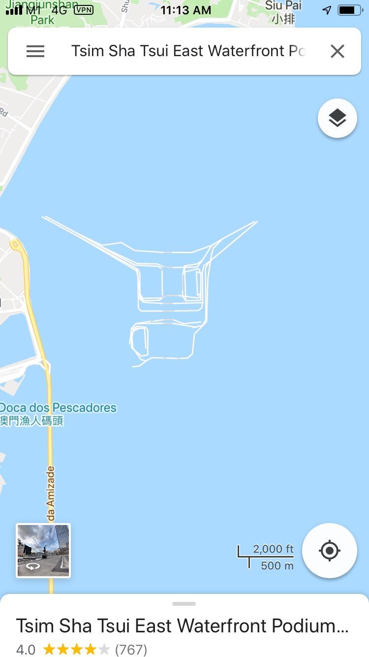 Map Info & Chart : Anyone knows what this mess of roads of the coast of Macau is? Is it a glitch or something? Google maps says that there are 2 ATMs there.