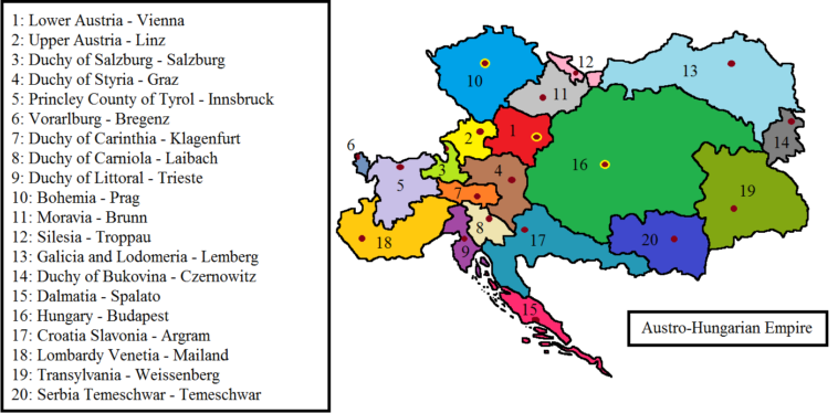 Map Info & Chart : Austro-Hungarian Empire – the map of its subdivisions