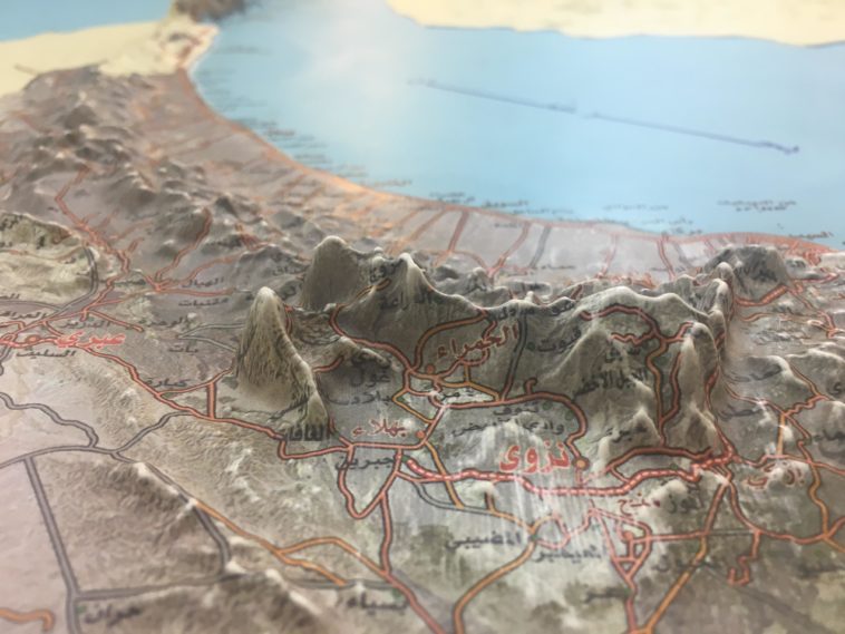 Map Info & Chart : Awesome raised relief map of Oman’s Eastern Al Hajah Mts at Nizwa’s Souk