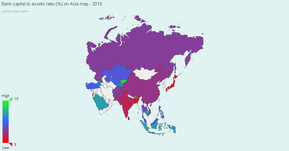 Map Info & Chart : Bank capital to assets ratio (%) (Asia)