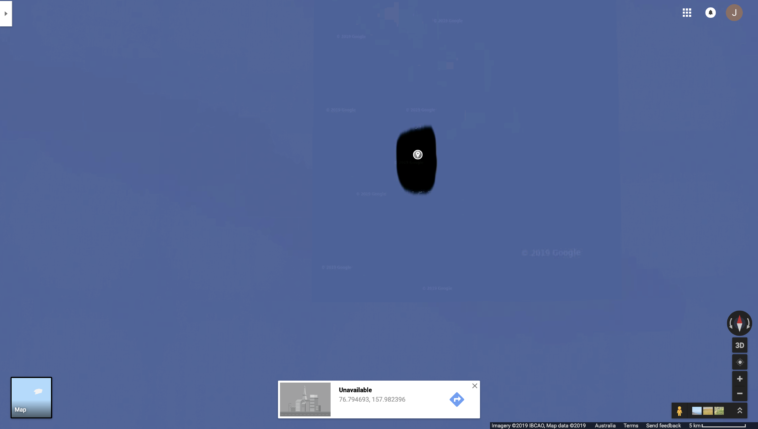 Map Info & Chart : Can anyone give me an indication as to why this island has been wiped out on satellite on Google Earth? Coordinates as follows: 76.794693, 157.982396