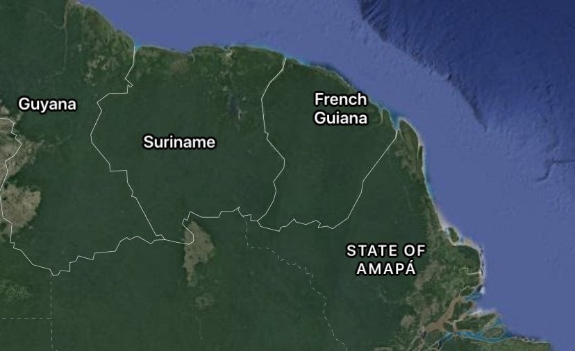 But that is beside the point. French Guiana has the wrong font. It gets classified as a country, an independent country. And by being close to both Suriname and STATE OF AMAPÁ in Brazil it sticks out.