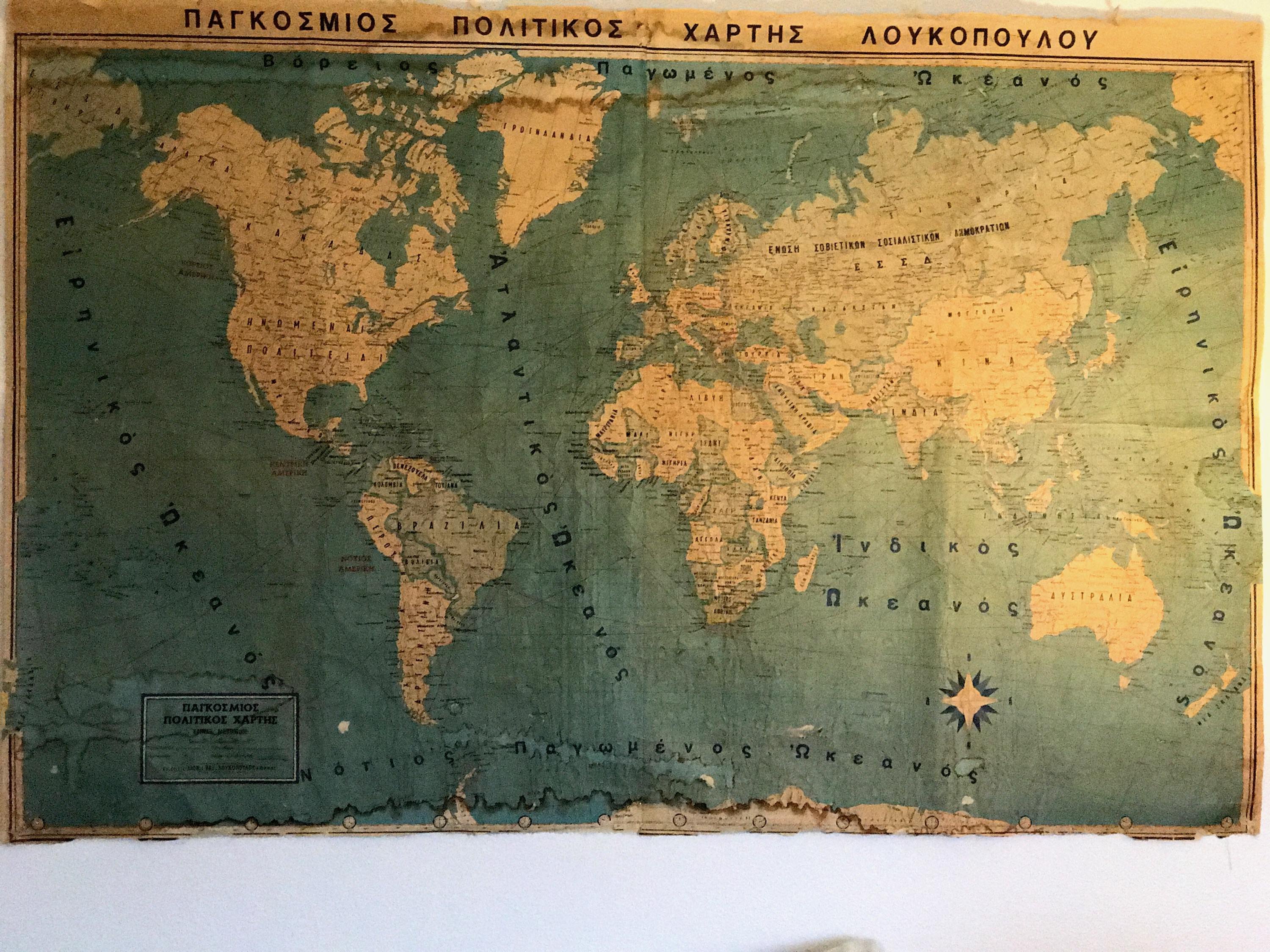 Found this in an AirBnB and am curious about when it was made. (For those worried about New Zealand, it *is* on the map but hard to see because it’s split in two and hidden on the edges.) Any help is appreciated!