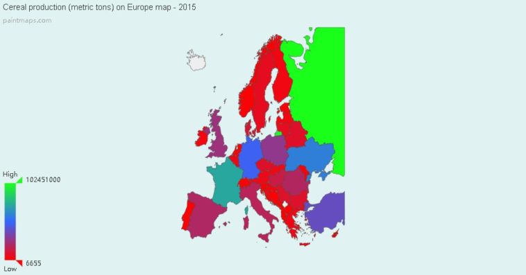 Map Info & Chart : Cereal production (metric tons) (Europe)