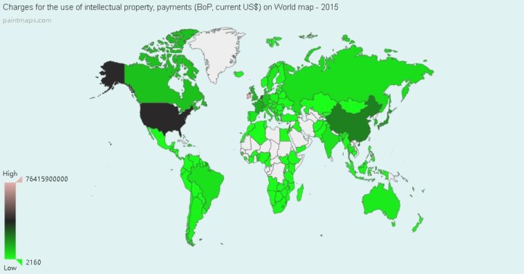 Map Info & Chart : Charges For The Use Of Intellectual Property Payments BoP Current USdollar On World Map