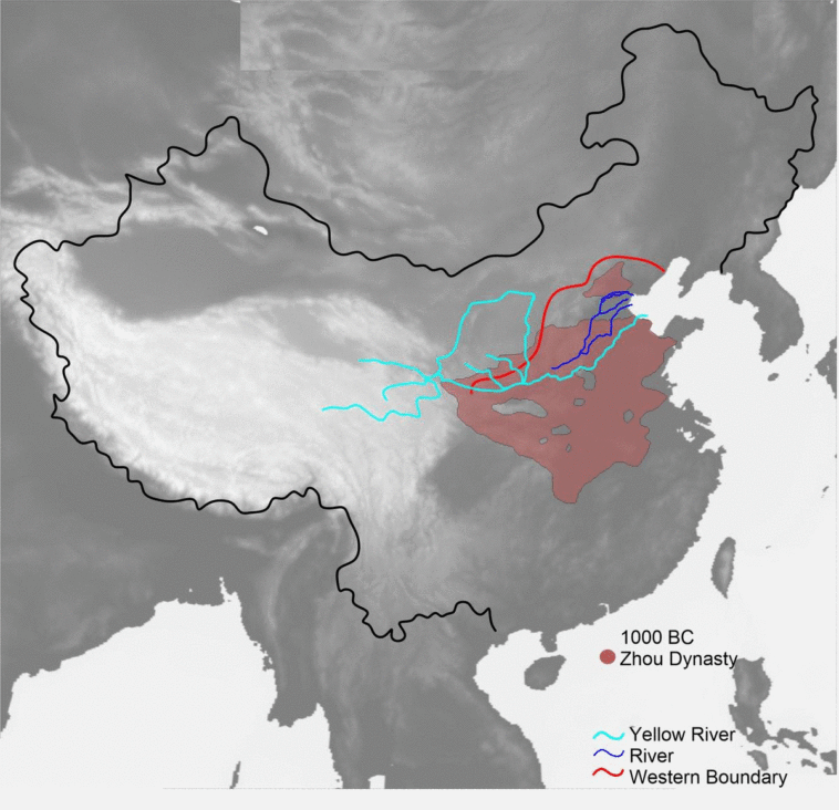 China’s changing borders and Yellow River courses from 1000 BC to present