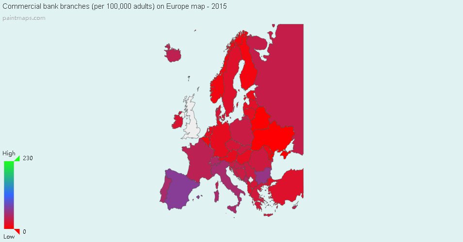 Map : Commercial bank branches (per 100,000 adults) (Europe)