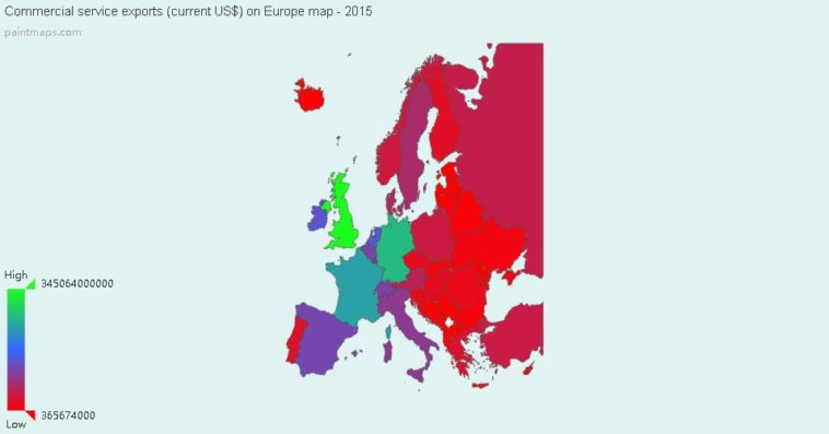 Map Info & Chart : Commercial service exports (current US$) (Europe)
