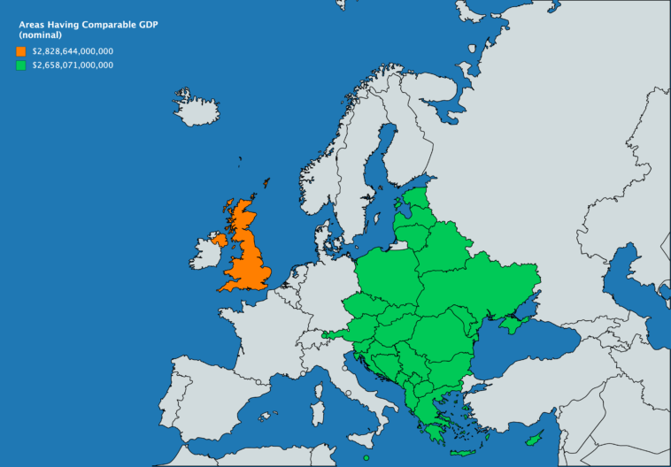 Map : Comparison of UK GDP (nominal), IMF 2018