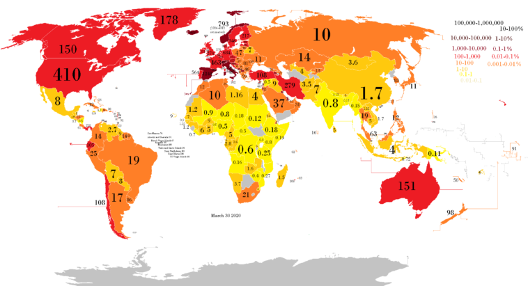 Map Info & Chart : Coronavirus map per million, this one has colors