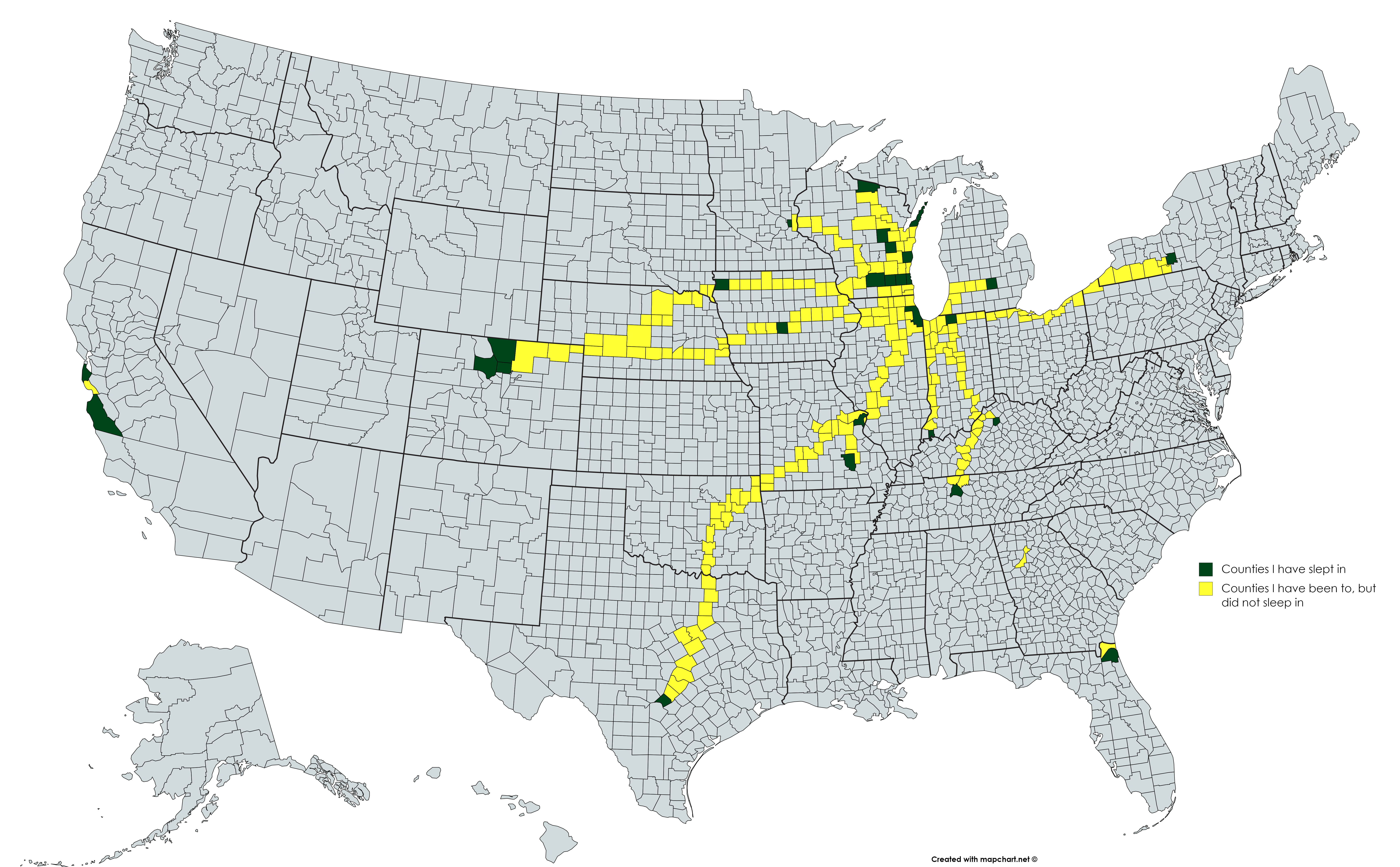 Map Info & Chart : Counties I have slept in or visited