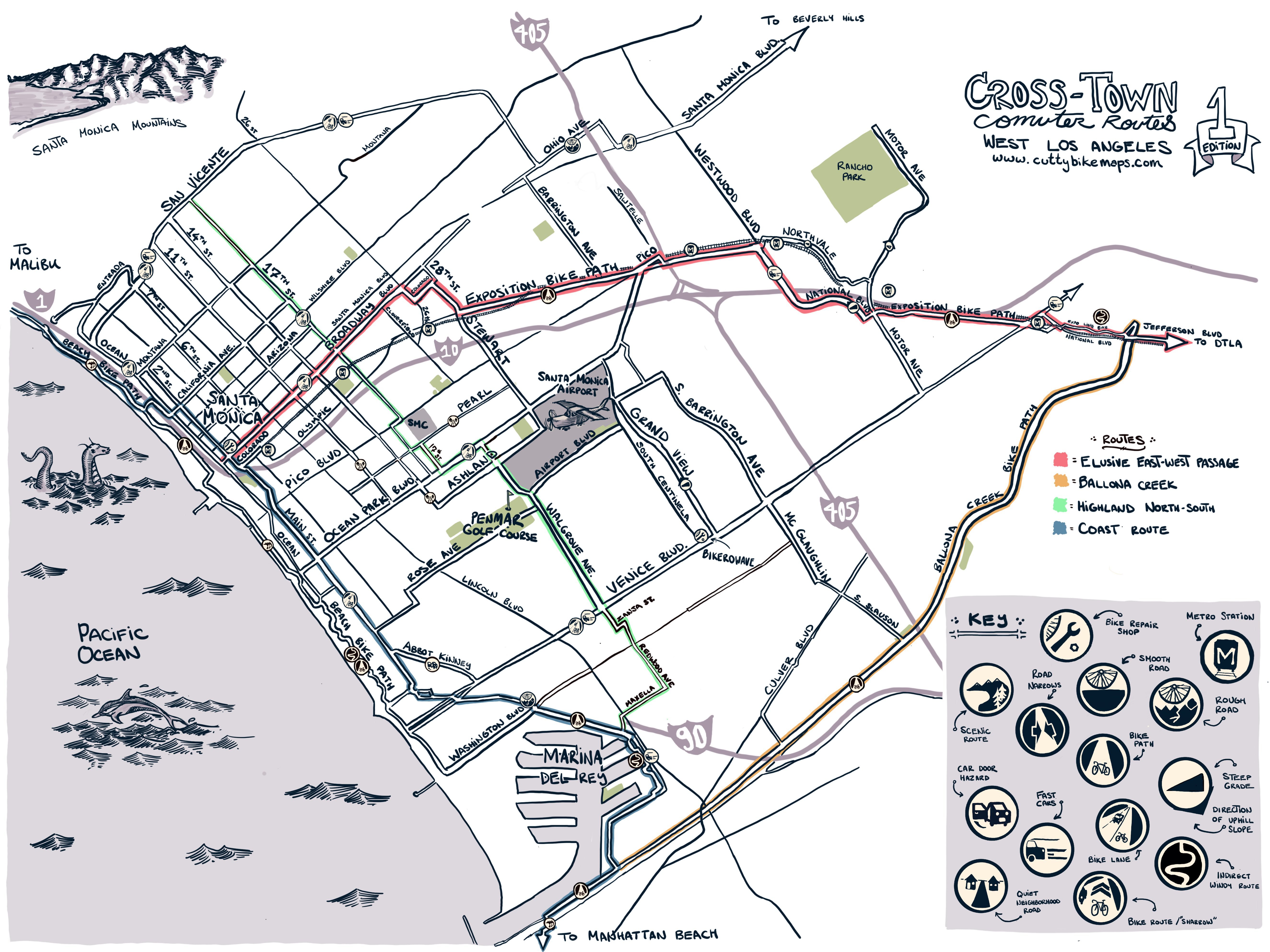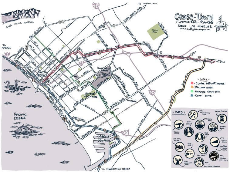Map Info & Chart : crossing los angeles by bike (with minimal danger)
