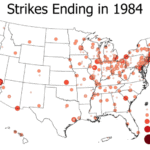 Map : US Strikes Mapped, 1984-2017, categorized by # of Workers Striking (all locations approximate)