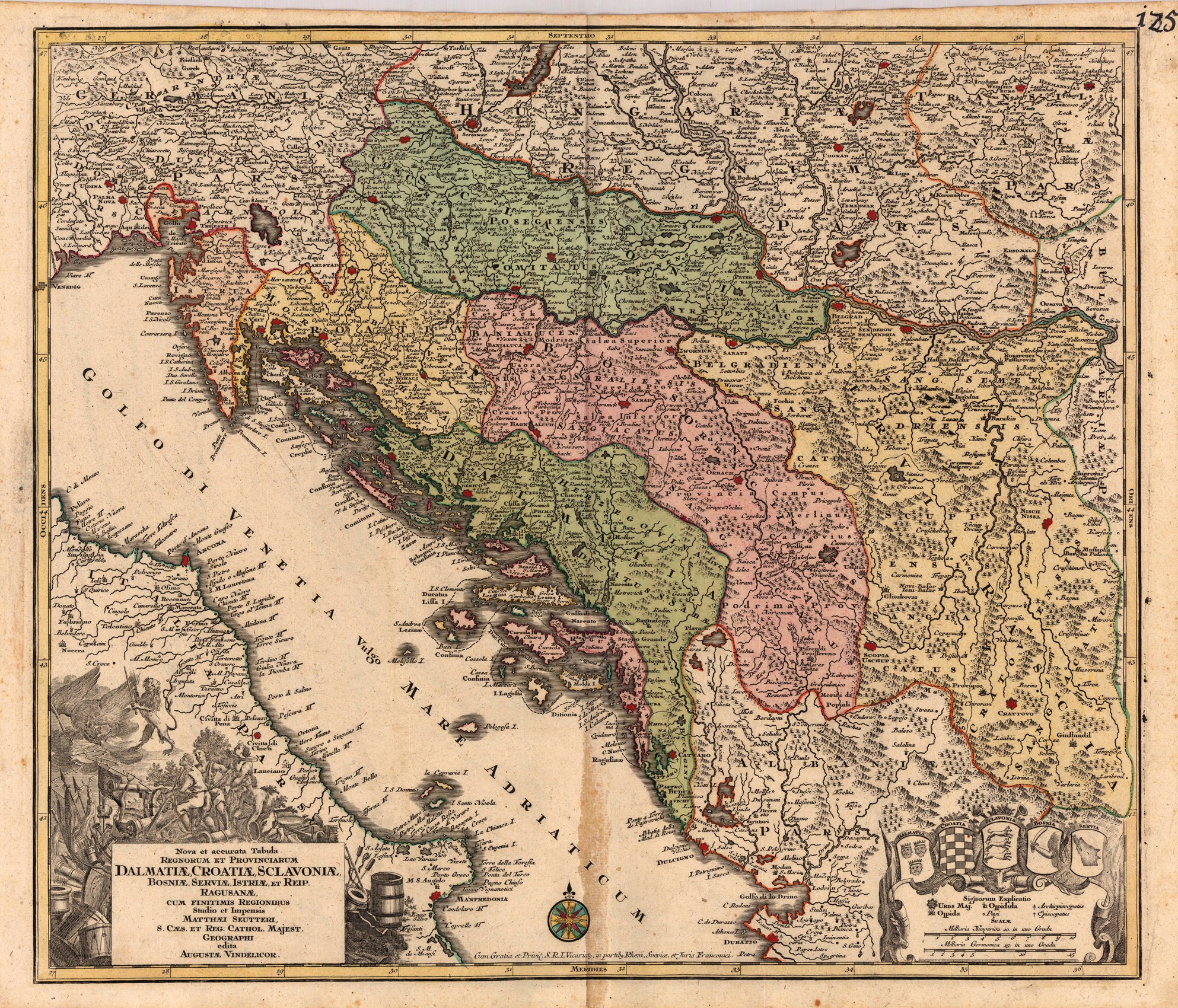 Map Info & Chart : Dalmatia, Croatia , Sclavonia, Bosnia, Serbia, Istria and Republic of Ragusa, old map, 1720
