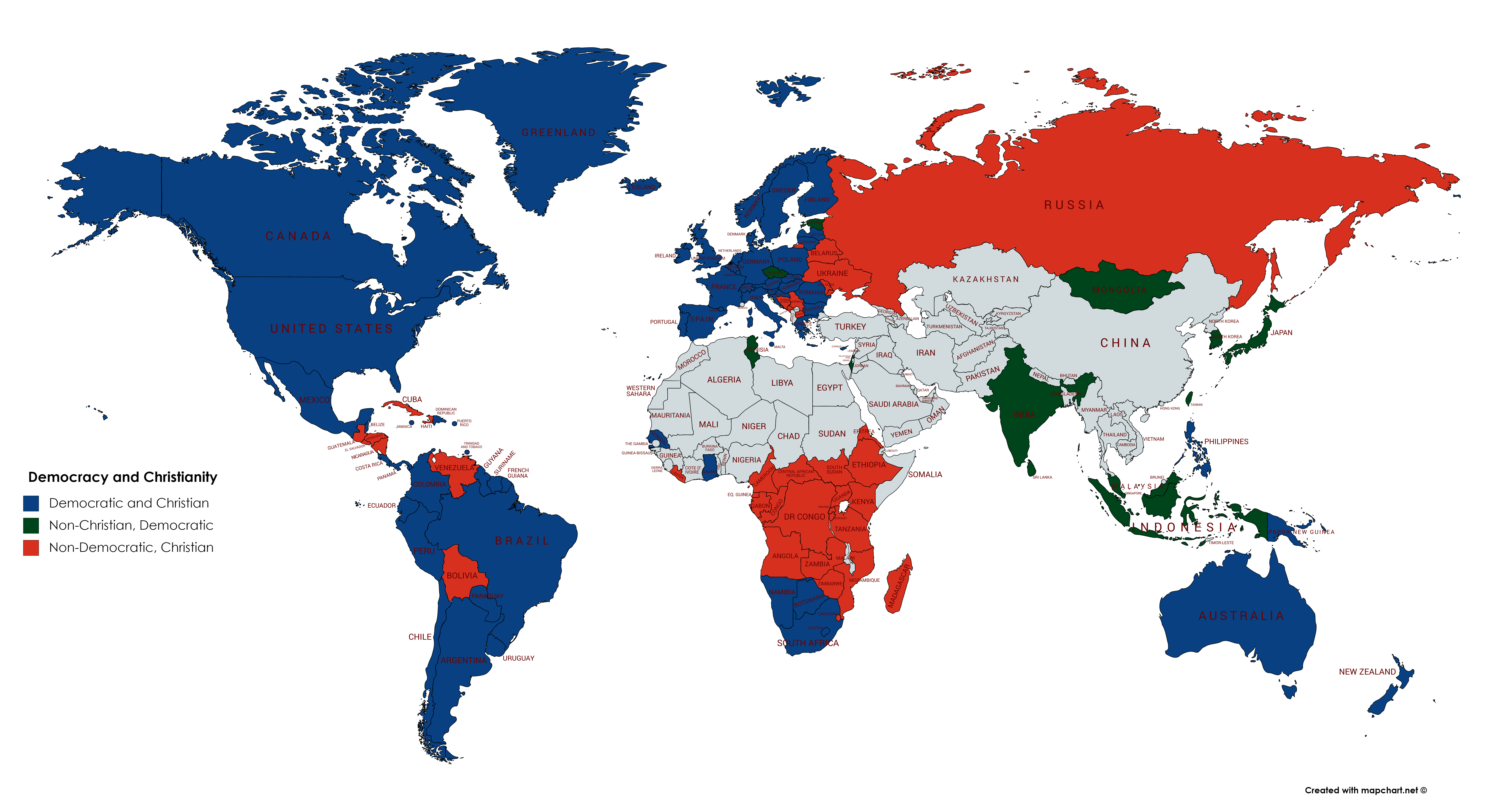 Map Info & Chart : Democracy and Christianity (explanation in comments)