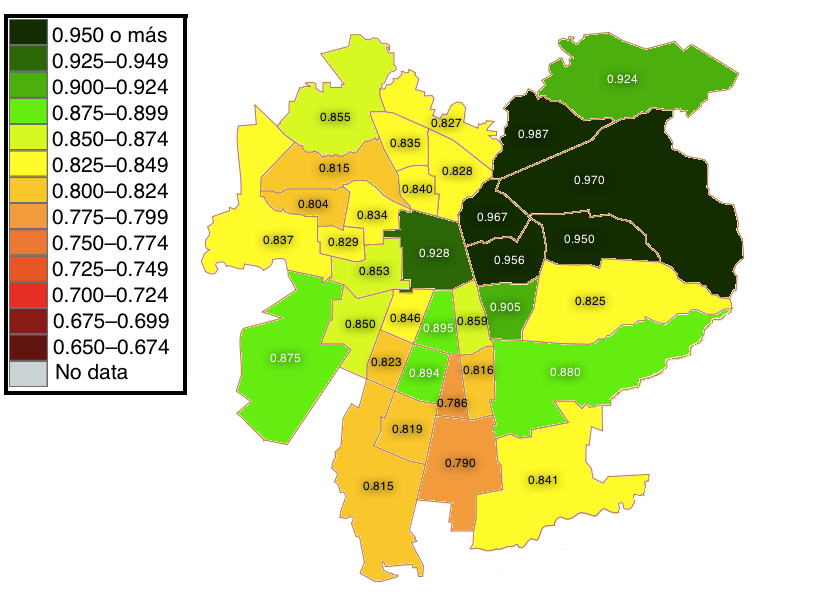 Map Info & Chart : Districts of Santiago, Chile by human development index