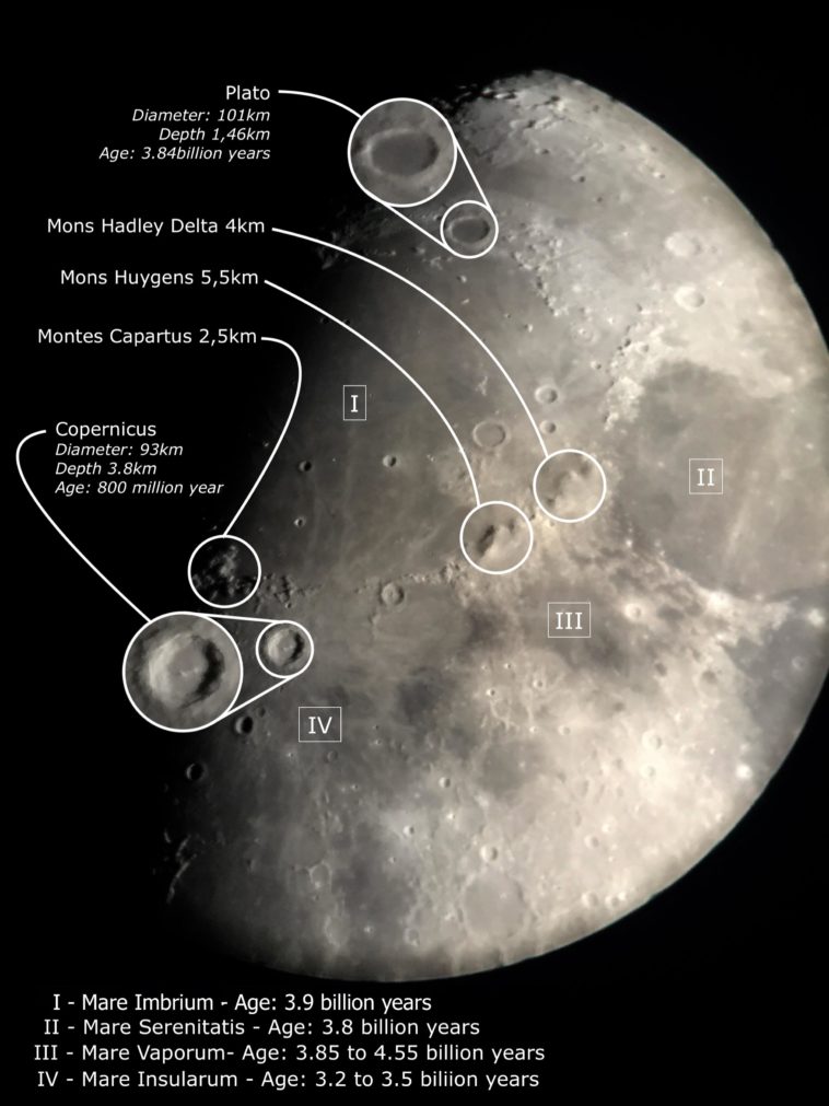 Map Info & Chart : (Don’t know if that really counts as a map) A picture I took with my telescope of the Mare Imbrium region of the Moon with some added information.