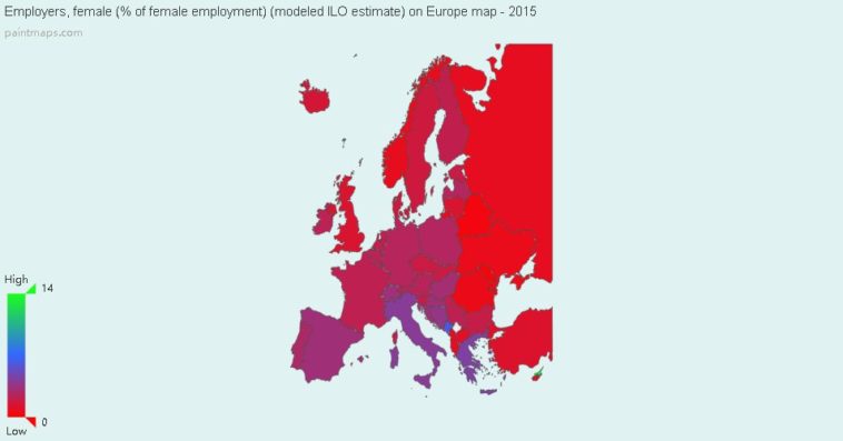 Map : Employers, female (% of female employment) (modeled ILO estimate) (Europe)