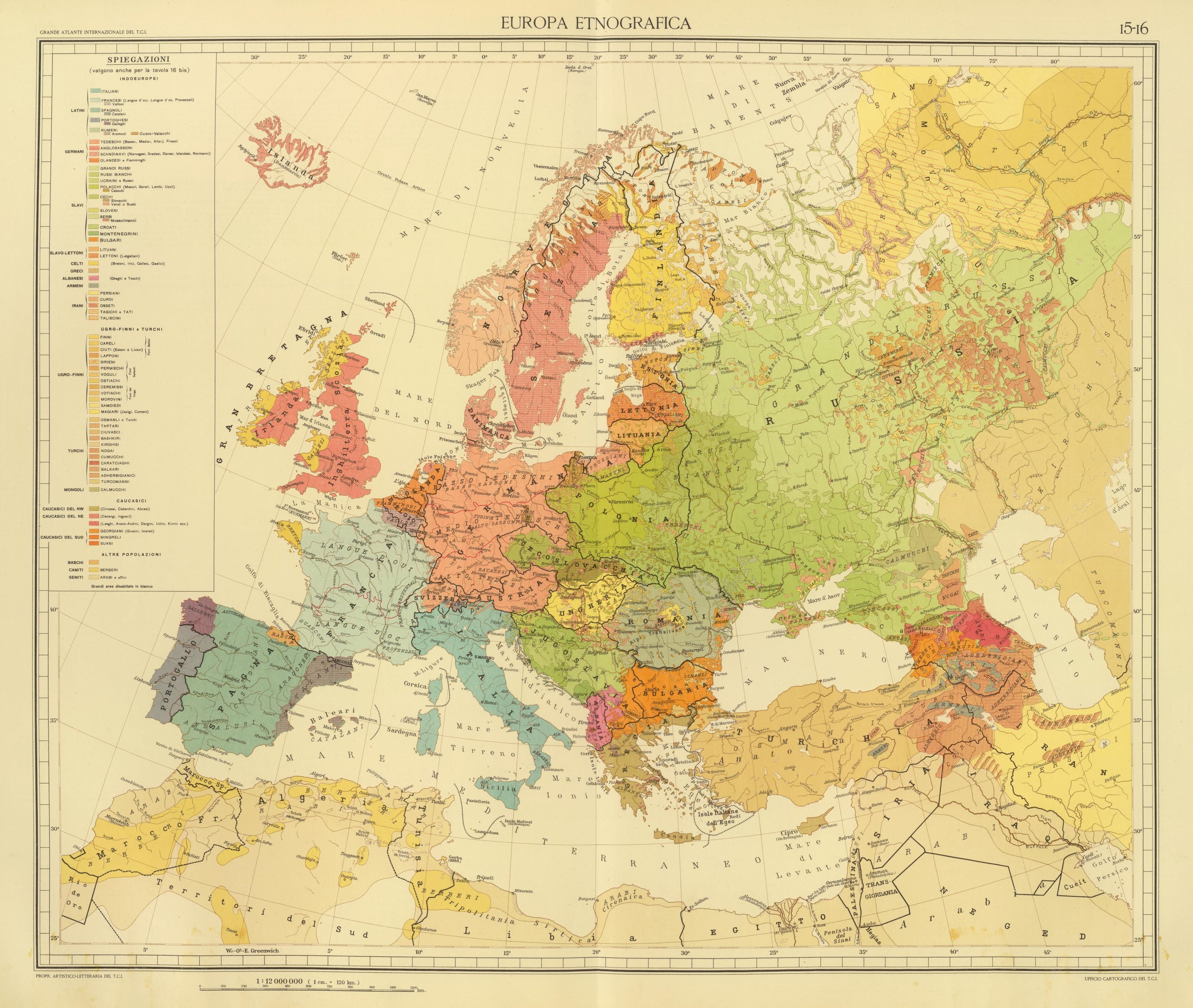 Map Info & Chart : Ethnographic Map of Europe from the Touring Club Italiano (1929) [4008 x 3388]