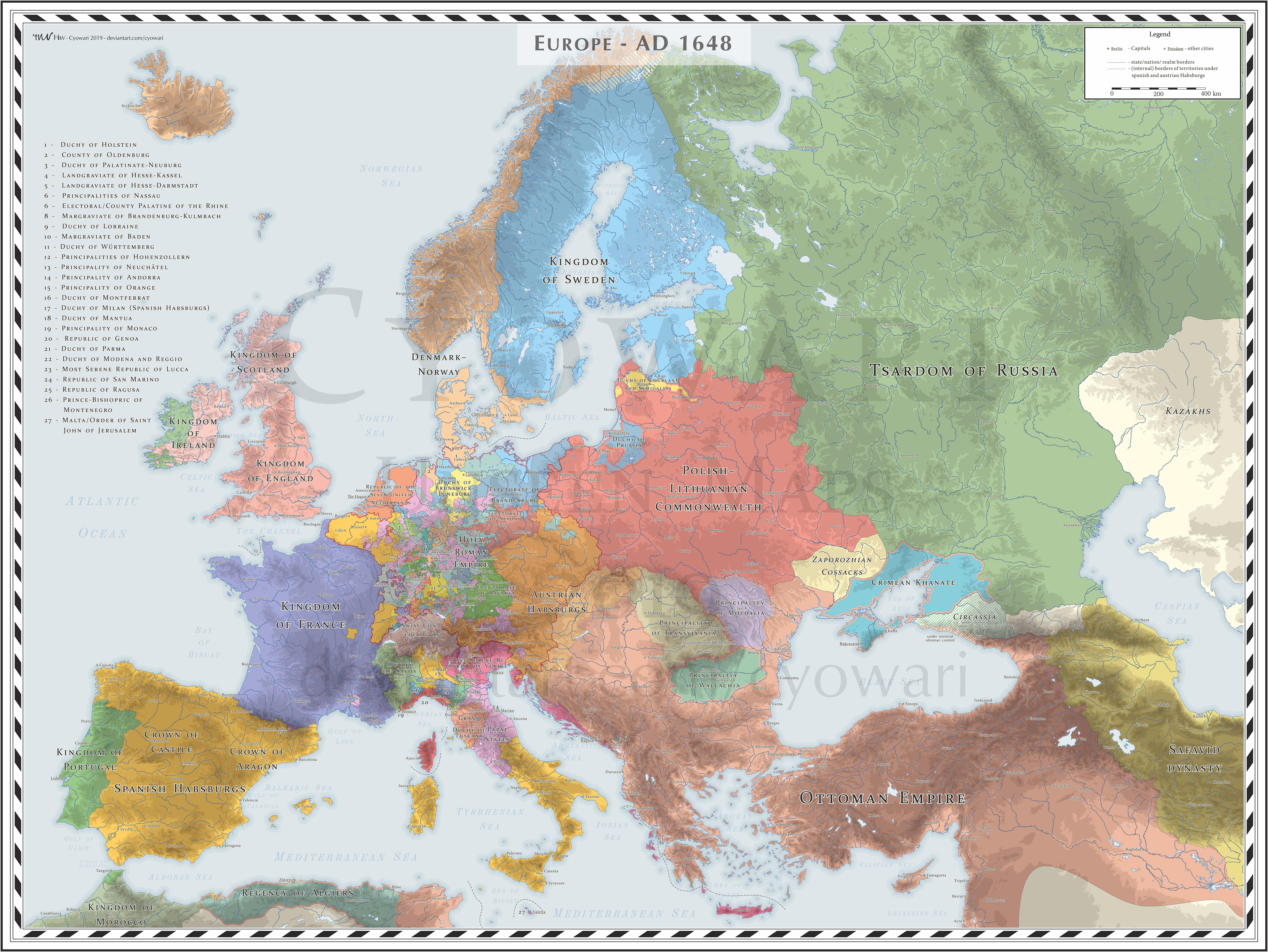 Map Info & Chart : Europe (Detailed) – AD 1648 [6637×4983] [OC]