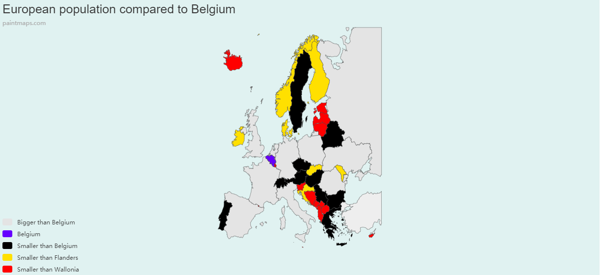 Map : European countries that have a lower population than Belgium, Flanders and Wallonia