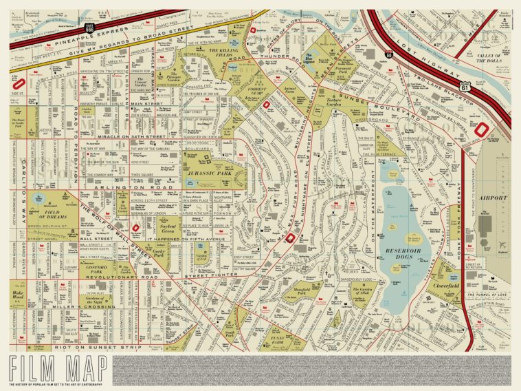 FILM MAP (made by Dorothy Design Studios UK) where each street and geographic location refers back to a movie or movie location.