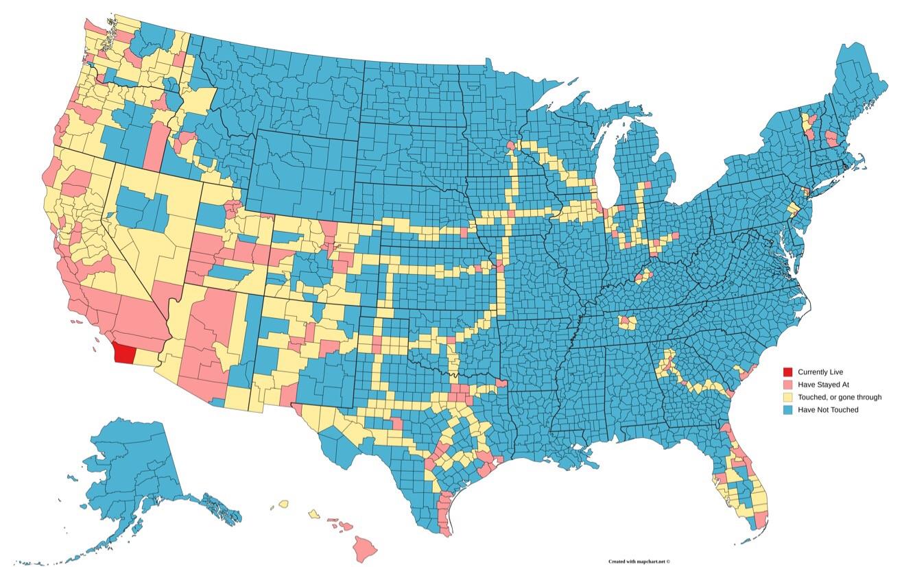 Finally finished a map of everywhere I’ve been. I hope to have pink in every state before the end of my next two years in High School.
