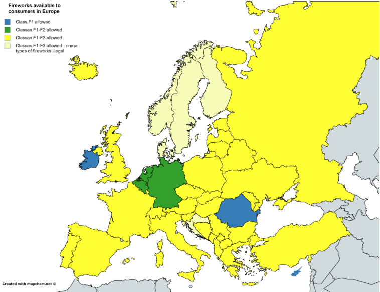 Map Info & Chart : Fireworks available to consumers in Europe for the New Year’s Eve OC [4170×3210]