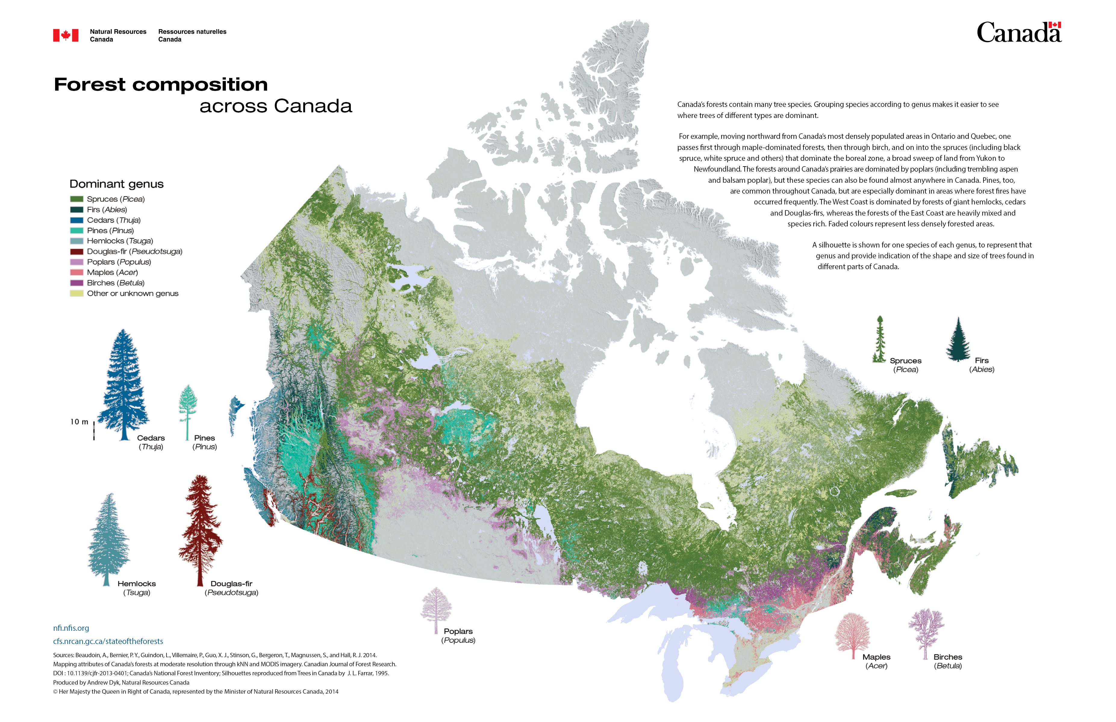 Map Info & Chart : Forest distribution and composition of Canada by dominant genus [3706×2398]