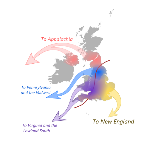 Map Info & Chart : Four British Folkways in America. Who went where.