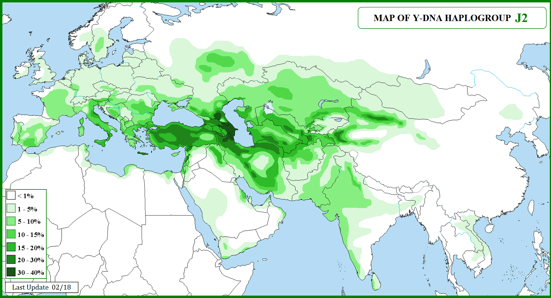 Map Info & Chart : Frequency of Haplogroup J2 in Eurasia