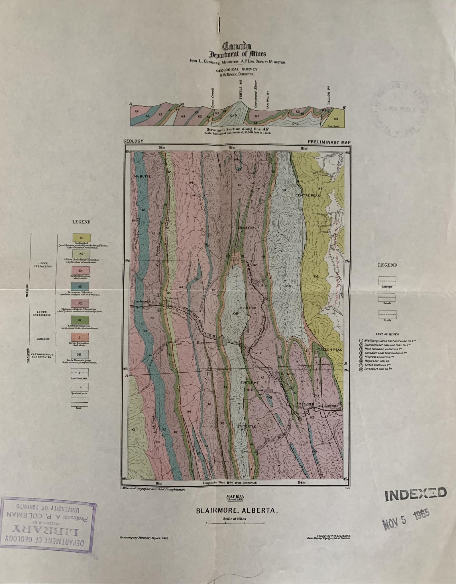 Geologic Survey of Blairmore, Alberta, Canada [Department of Mines; W.W.Leach, 1912].