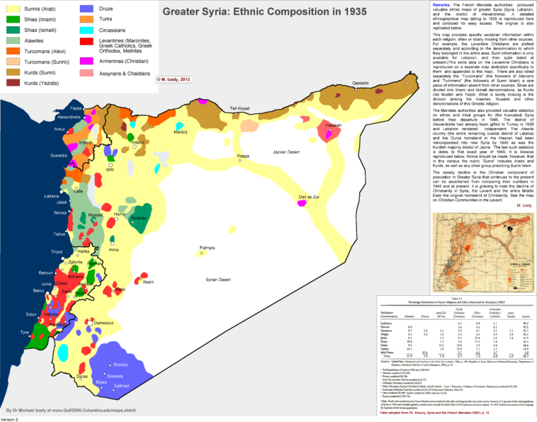 Map Info & Chart : Greater Syria Ethnic Map Remade with French Based Map of 1935 [6309×4959]