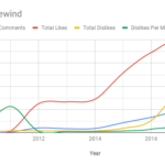 data visualization : Youtube Rewind Likes vs. Dislikes Over Time [OC]