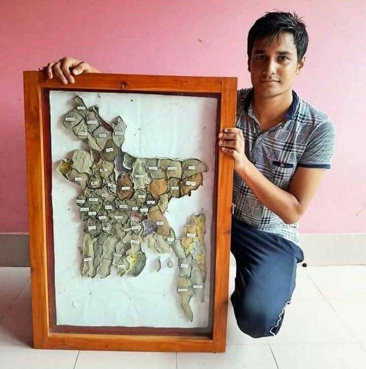 He visited all 64 districts in Bangladesh. Then made a map with soil from each one.