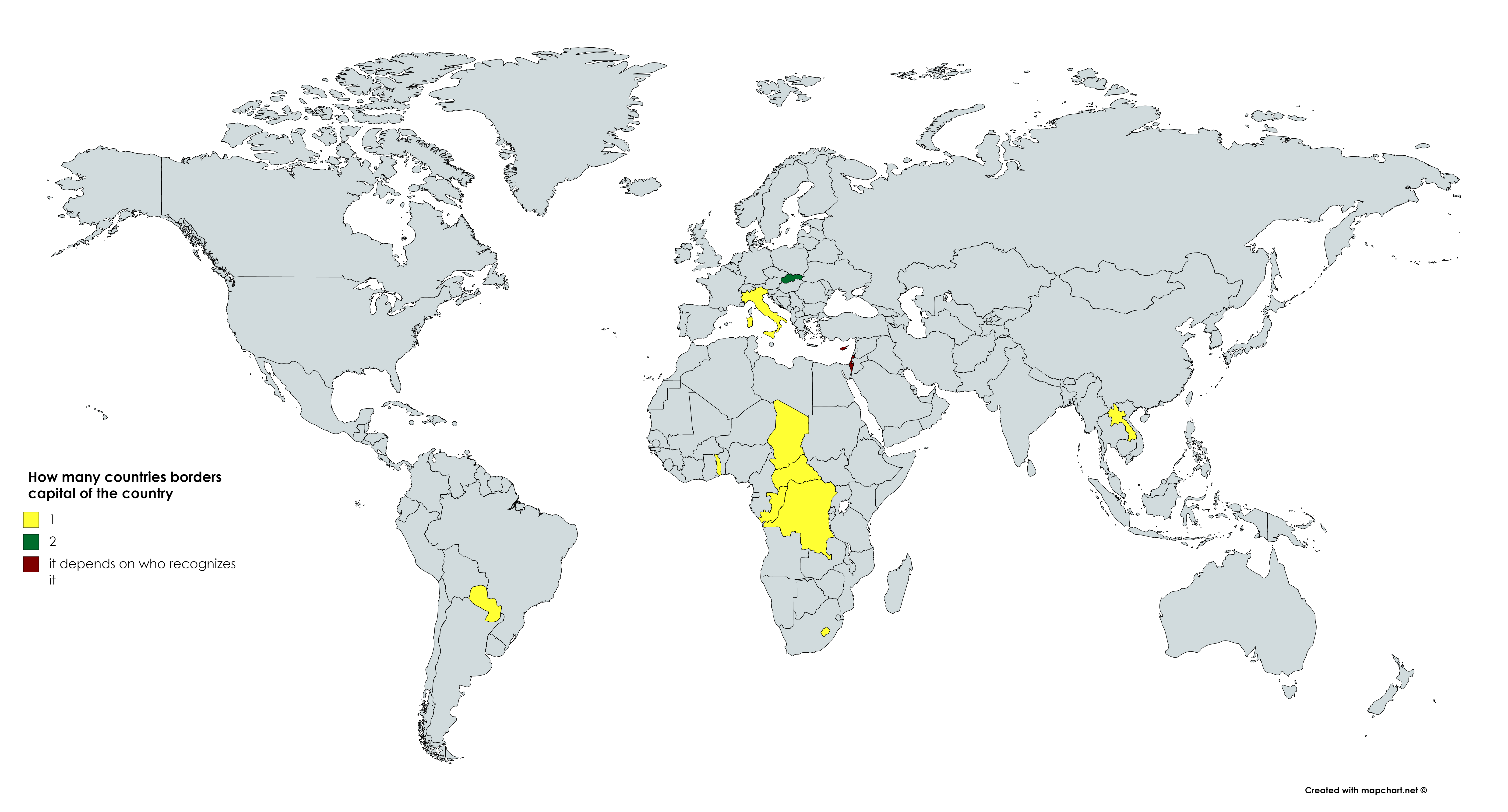 Map Info & Chart : How many countries borders capital of the country