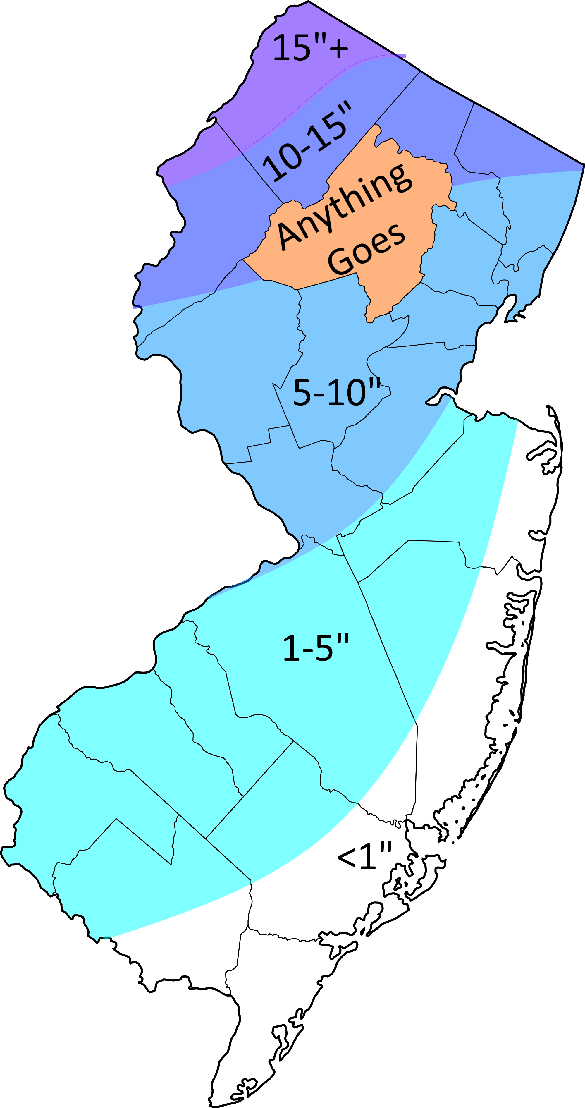 How most snow maps of New Jersey look like as a Morris County resident [OC?]